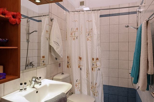 Im Apartment haben Sie einen geräumigen Wohn- und Essraum mit Esstisch und Sofa. Die zwei Einzelbetten (Matratzen 90x200) sind eine Sonder-Anfertigung und sind geschmackvoll als Sofa dekoriert. Die Küche ist sehr gut ausgestattet, mit allem, was man als Selbstversorger im Urlaub benötigt. Vom Sparschäler über Brotmesser, Obstmesser und Korkenzieher bis hin zu Kaffeemaschine, Wasserkocher und Toaster ist alles vorhanden. Zwei Ceran-Kochfelder, Töpfe und Pfannen ermöglichen die unkomplizierte Zubereitung von kleinen Mahlzeiten. Und wer lieber essen geht, ist in nur wenige Minuten zu Fuß direkt an der Strandpromenade, wo es eine vielfältige Auswahl an netten Tavernen mit vielen leckeren traditionellen Gerichten gibt. Die Apartments und Studios sind geräumig und haben meist auch noch Platz für ein Babybettchen. Die Bäder sind ausgestattet mit einer Dusche. Fragen Sie einfach nach, wenn Sie etwas benötigen. Der Strand liegt direkt vor dem Haupthaus FINIKAS I, wo man auch im Schatten, auf der großen Veranda, sitzen kann. Der Service umfasst tägliche Reinigung und 3 tägig frische Bettwäsche und Handtücher (auch Geschirrtücher und Spül-schwamm und Wischlappen). Private Wäsche kann gegen einen kleinen Unkostenbeitrag zum Waschen gegeben werden. Die Apartments kosten zwischen 90 Euro und 100 Euro pro Nacht, je nach Saison und Aufenthaltsdauer. E.O.T. Lizenz Nr.: ΜΗΤΕ 1039Κ032Α0013001